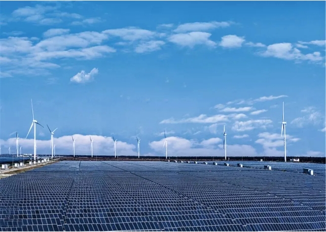 风车下,滩涂和海面上,同样可以铺设光伏板。