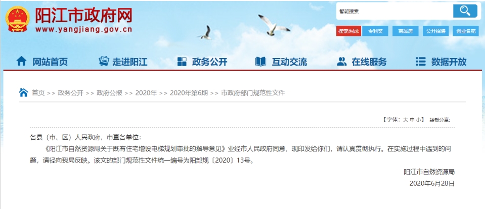 阳江市:《阳江市自然资源局关于既有住宅增设电梯规划审批的指导意见》