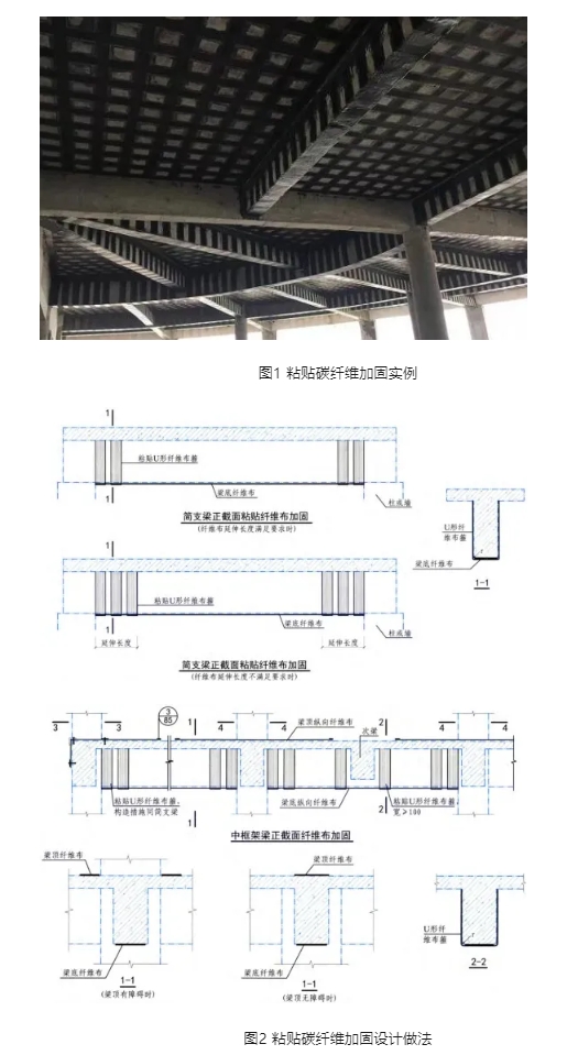 碳纤维布需采用高度强Ⅰ级碳纤维布,抗拉强度标准值≥3400MPa,伸长率≥1.7%。碳纤维布粘贴胶采用A类胶,宜与碳纤维布配套采用同品牌胶。相关指标应符合《混凝土结构加固设计规范》GB 50367中4.4的有关要求。