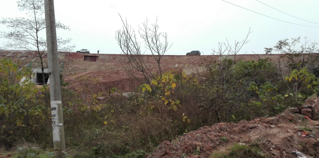 3、抗滑桩体外露约2.5m,将弃渣清理反压于抗滑桩后,有效防止坡体发生浅层越顶,也就对破损的护脚墙与外移的8m长抗滑桩工程的不足进行弥补和掩盖,并有效解决了弃方外运的问题。